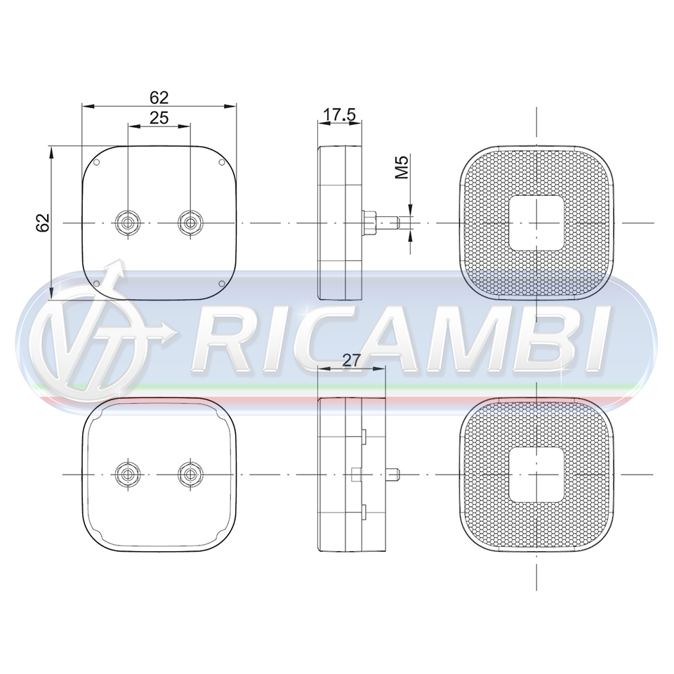 Dimensioni ingombro esterne: 62 x 62 x 17,5 mm