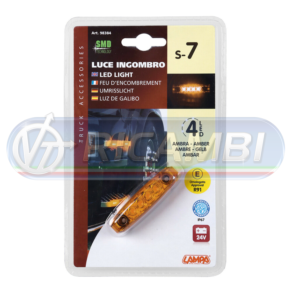 Luce ingombro a 4 Led, 9/33V - Arancione