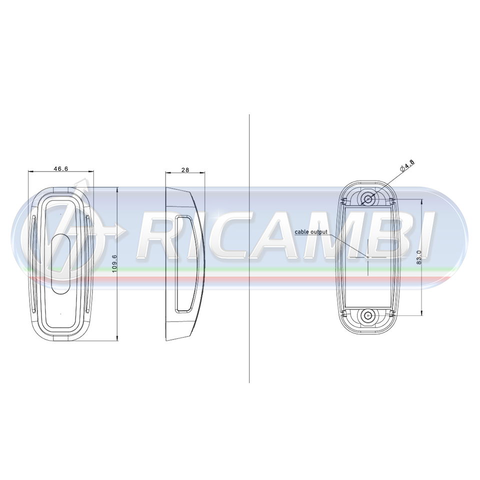 Dimensioni massime ingombro esterne: 109,6 x 46,6 x 28mm