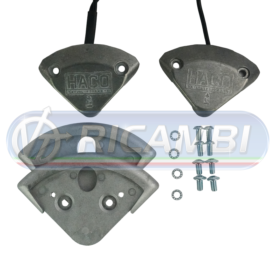 La confezione include due lampeggianti, due protezioni, cablaggio, 8 viti M6x12 (di cui 4 a testa larga), 4 rondelle dentellate.